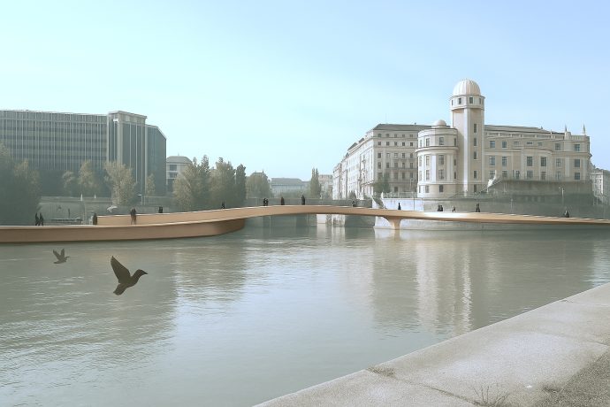 Der „Mündungssteg“ – Sichtbarmachen des ihn umgebenden Raumes: DIE BRÜCKE IM RAUM –GESTALTUNG bewusst erlebt „Unten am Kanal gehen oder radeln wir vom Schwedenplatz Richtung Urania: Der Weg ist eben, beschaulich, breit, rechts die Mauer, der Kanal links, ein Geländer wird nicht vermisst; sobald der Blick auf die Urania fällt, treten Rampen ins Blickfeld, Geländer, Treppen … Dieser Weg, der nach der Urania abrupt in einer Krümmung enden muss: der Wienfluss; liegt vor uns – - bisher und dann?! ein Fußgänger- und Fahrradsteg kann alle diese Linien auffangen und verstärken- in einem nach oben und in die Wienufer führenden Bogen führt er ruhig weiter; zeigt auf neue Art dieses schon bestehende Biegen des Ufers; gibt den Blick frei auf wendende Schiffe, auf einen interessanten View der Radetzky- und Bahnbrücke; führt dann wieder hinab – – zu neuen lebenssprühenden Ufern (Sommer! und Sandstrand) – ohne mehrfach zeitlichem Interruptus einer aufgeklappten Variante - Herbst!: setzt diese, an einem Abend völlig im Dunkeln schlafende Ecke auf beiden Ufern der Flussmündung neu in Szene durch schlanke Lichtlinien, gezielte und permanente Beleuchtung. Die „fließende“ Konstruktion des Steges nimmt sich zurück, schlank und fast unsichtbar, um gleichzeitig damit zu zeigen, was erst heute technisch machbar ist; nichts stört die Ruhe der Bewegung. Die „Haut“ des Steges schimmert wie ein Fisch unter Wasser und gibt sanfte Lichtspiegelungen. Gleichzeitig erinnert beim Daraufzugehen die Unterseite an einen Bootsrumpf in dem man geborgen das andere Ufer erreicht. Bewusst ist hier keine ähnliche oder aufwändige Konstruktion vor der Radetzkybrücke, die sonst – bis auf das unerwünschte! Aufklappen – vor der Brücke steht. Das Geländer transparent- ein Handlauf der den Brückenbogen filigran für den Fußgänger spiegelt. Die Konstruktion der Brücke am Ufer verschmilzt nicht mit der Ufermauer zu einem „Betonsockel“ sondern steht eigenständig, selbstbewusst mehrfach auf schlanken, teils schrägen Stützen verschiedener Stärken, wie erforderlich, und lässt die Ufermauer weiterlaufen. Die Stützen setzen sich vom schimmernden Brückenkörper ab- matt und in verschiedenen Erd- und Pflanzenfarben „wachsen“ sie in eigener Position. Die schlanke(!)Mittelstütze (1!) – der sensible Teil vor der Radetzkybrücke deckt nicht einmal bei Frontalansicht den Sockel ab. Die Stütze teilt ihn in 2 Teile ( eine frontale Moment(!)aufnahme) und verzweigt sich oben, um wieder Durchblicke zu focussieren.. Beim Vorbeifahren mit dem Schiff oder Wandern über den Steg wird die Situation jeweils neu erlebt. Ines Bösch |